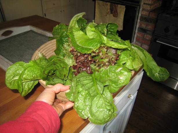 Some times your best bet to save the harvest comes from having hungry neighbors. “Hello, Janet? How would you like a bag of freshly picked lettuce?….You would? That’s great. I’ll be right over.” Done and done.