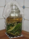 For the complete recipe, click on over to Marisa’s interview, and you’ll find it there. As for me, I didn’t follow it to the letter. I used a pickling spice I had already made for another project, and I increased proportions to accomodate 1.5 bounds of cucumbers. I also took a leap of faith and quartered the cucumbers lengthwise.