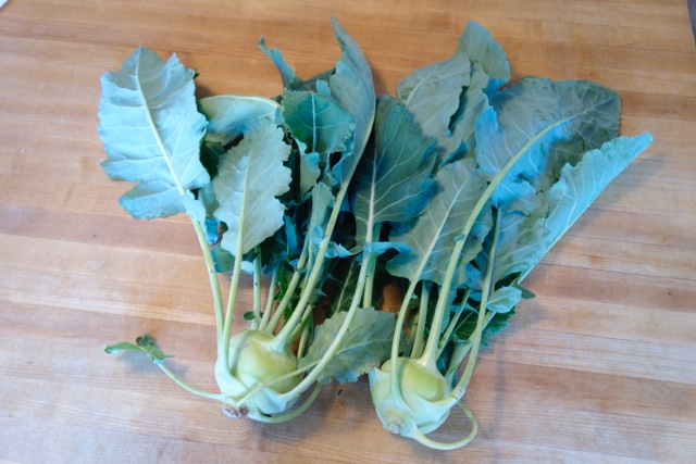 Regular readers of Save the Harvest will know that the Harvest Manager has been off duty while recovering from knee surgery, leaving the Gardener free to get up and move about the kitchen. A recent kohlrabi harvest raised this question: ” I wonder if the greens (tops) of the kohlrabi would be good to eat?” The Harvest Manager was under the influence of pain meds at the time and did not have a meaningful opinion on the matter, except to say “no harm in trying.”